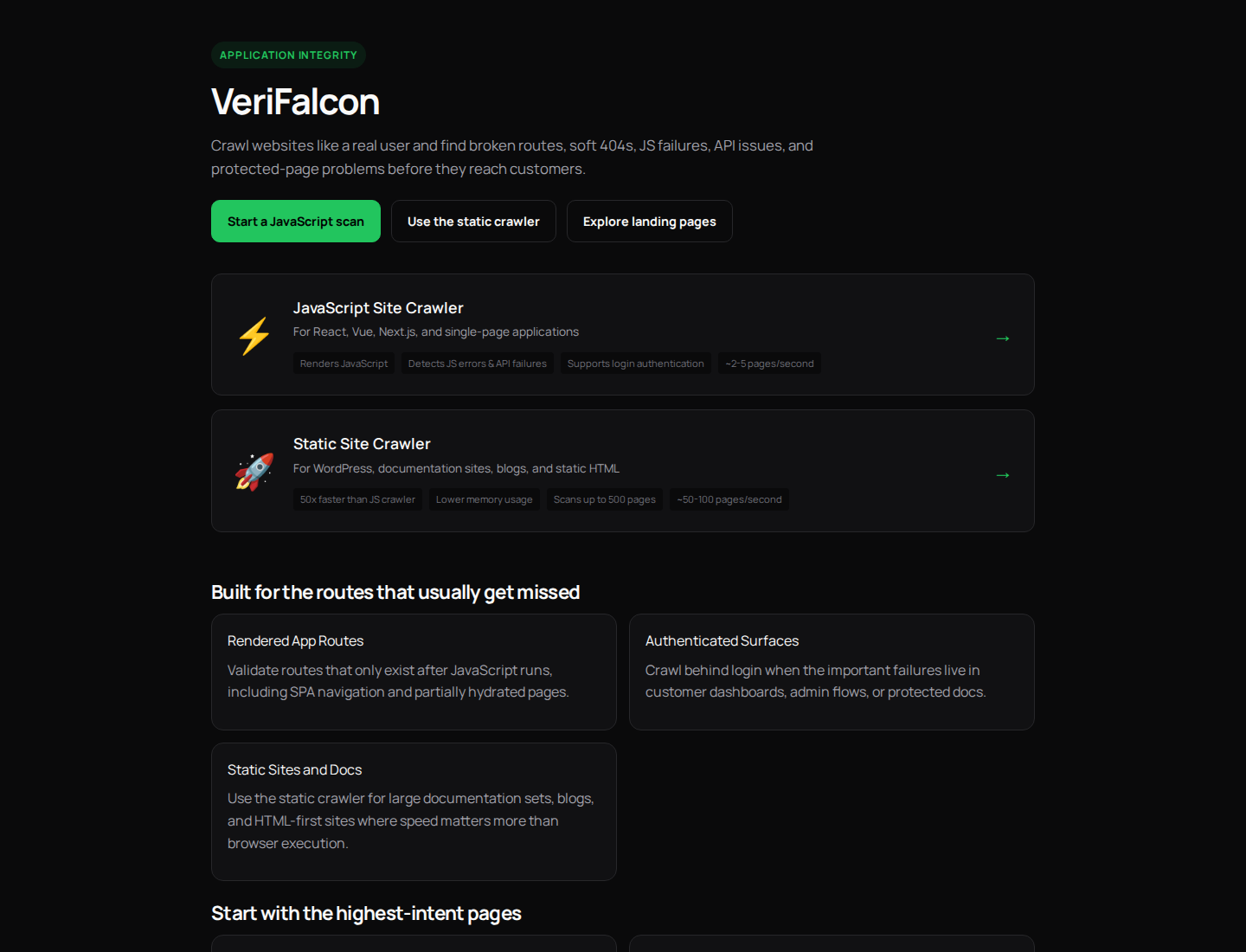 VeriFalcon exists for teams that need a practical answer to one operational question: what breaks when a real user clicks through this site or product surface? The product is intentionally narrower than a full SEO suite and lighter-weight than building scripted browser checks for every route.